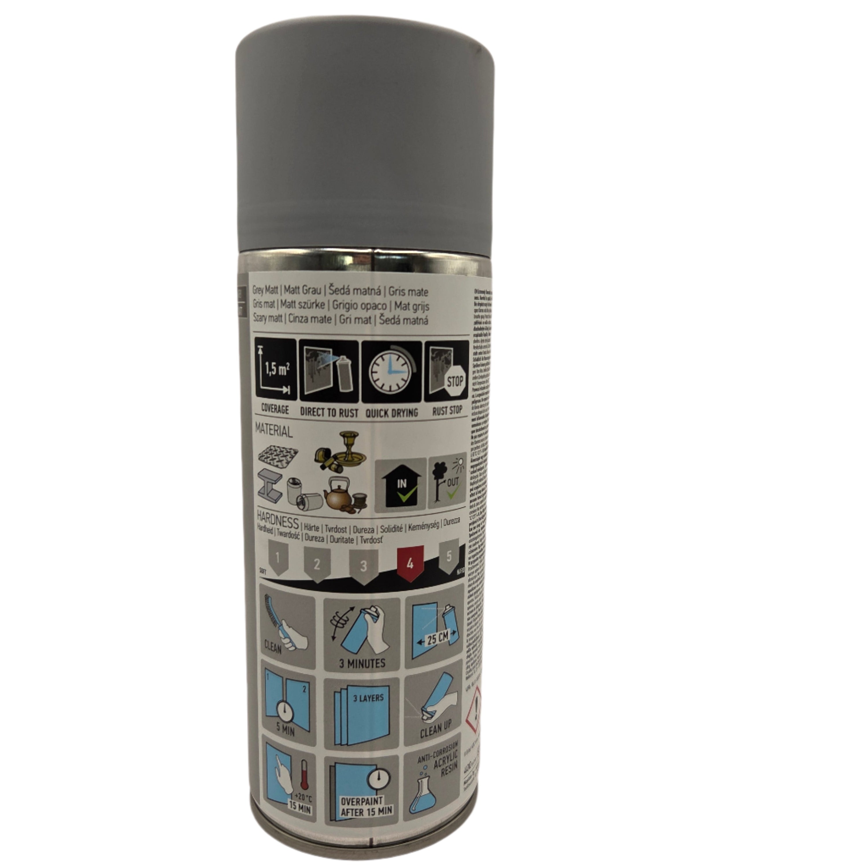 Ready for recoating in just 15 minutes, this primer helps you work faster and more efficiently. Its acrylic resin formula ensures weather resistance and excellent adhesion, making it suitable for both indoor and outdoor use. For optimal results, clean the surface thoroughly and shake the can vigorously for at least 3 minutes before spraying.