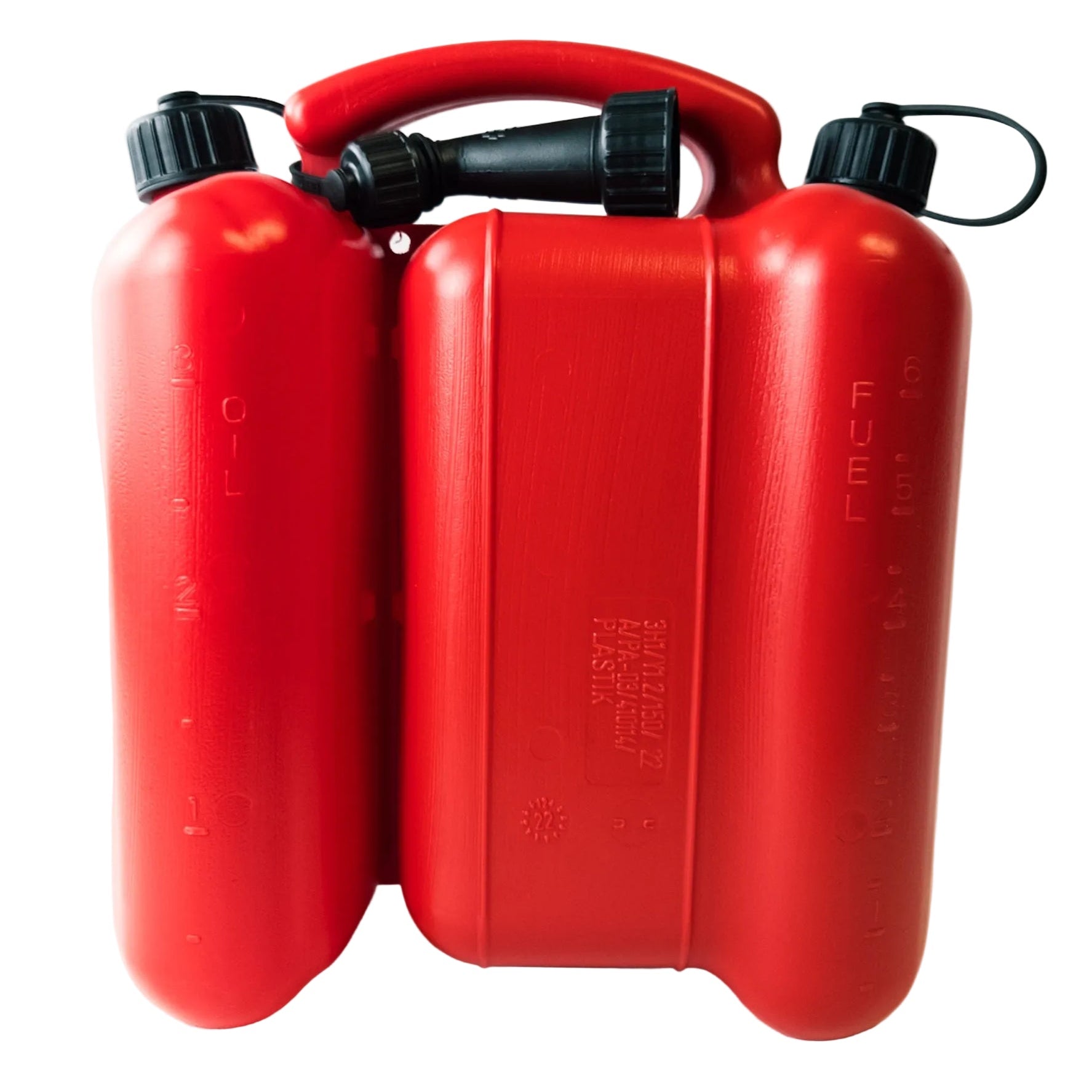 Organiza y transporta tus líquidos de manera eficiente con el bidón doble Carmotion, diseñado especialmente para quienes utilizan herramientas de motor de mezcla, como motosierras, desbrozadoras y otros equipos de dos tiempos.