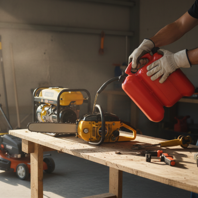 - Dos compartimentos independientes: permite almacenar gasolina y aceite en un solo recipiente, manteniéndolos separados y listos para su uso.