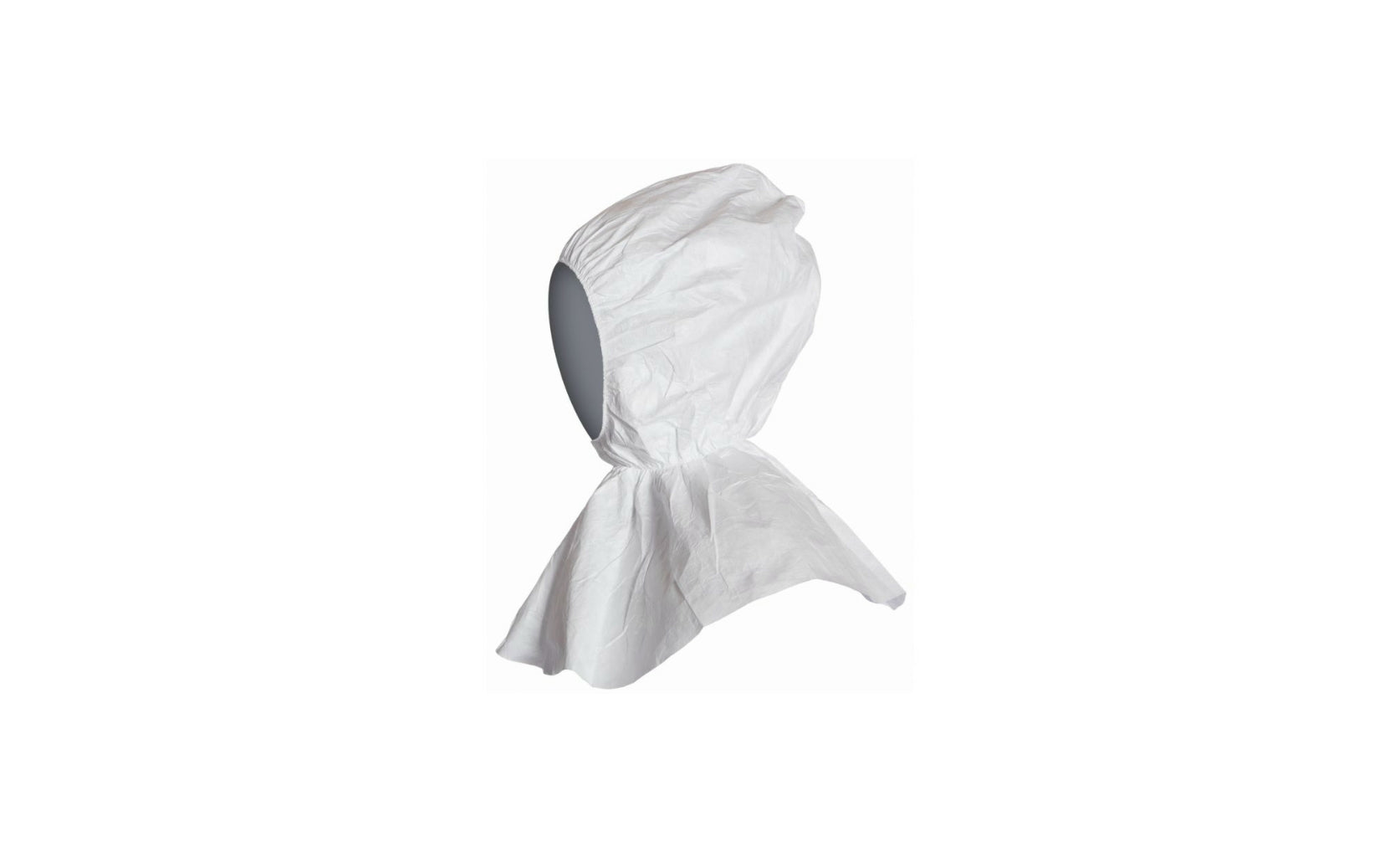 Chemical protective hood made from Tyvek for defense against liquid chemicals, solid particles, and biological hazards. Antistatic, ergonomic, breathable, and universal size.